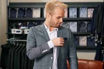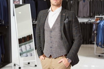 4. Do saka musíte vklouznout jako pod peřinu. Nesmí vás nikde táhnout a vyvracet vám při oblékání ramena. Dbejte také na to, aby vám nepřečnívaly ramenice saka přes hranu ramene.