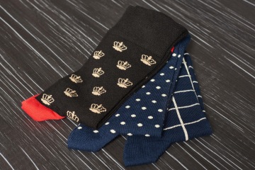 Ve spoustě článků se dočtete, že ponožky by měly ladit s barvou kalhot. Proč tomu tak je? Na tuto otázku si půjčíme odpověď od samotného Ladislava Špačka, mistra etikety: „Ponožky musí ladit s botami a neměly by působit kontrastně. K hnědým botám zvolíme hnědé nebo béžové ponožky.“ Ponožky by neměly být kratší, než jsou nohavice kalhot. Vyzkoušet si to můžete tak, že si sednete a pokud vidíte, že ponožky nejsou dostatečně dlouhé, rozhodně zvolte delší. Pro zpestření vašeho outfitu můžete použít barevné ponožky, které se staly trendem poslední doby. Veselé ponožky outfit jistým způsobem „osvěží“ a dodají mladistvý šmrnc. Ponožky doporučujeme ladit nejen s barvou kalhot, ale také s barvou kravaty případně kapesníčku. Zde si můžete dovolit vzít i kratší slim kalhoty.
